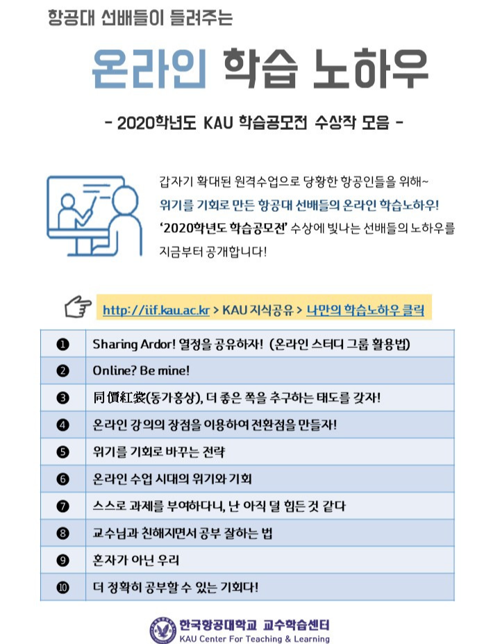 더불어, KAU(한국항공대학교)에서 제공하는 온라인 학습 팁과 자료도 유용합니다. 이곳에서는 효과적인 온라인 학습을 위한 다양한 전략을 제시하고 있으며, 학생들이 온라인 학습을 보다 잘 활용할 수 있도록 돕고 있습니다.