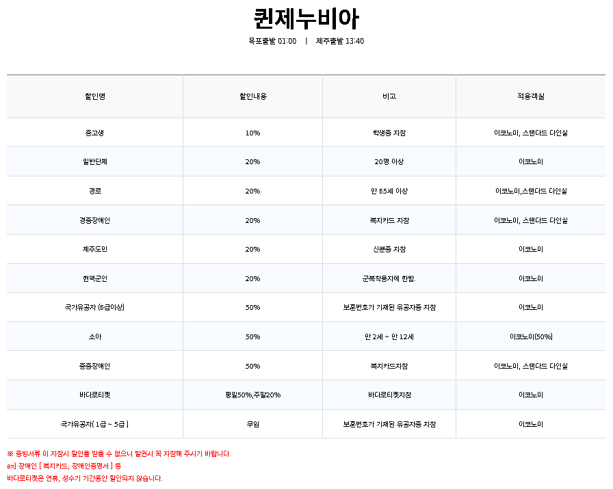 | 구분Div | 목포출발Depart from Mokpo | 제주도착Arriving at Jeju |