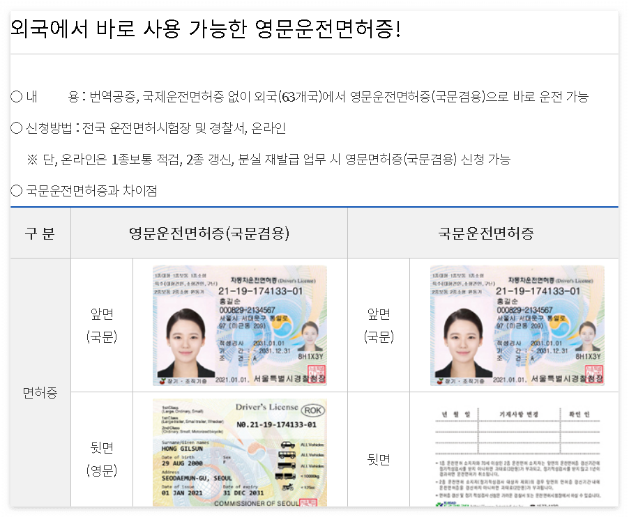 - 국제면허증 소지자: 국제면허증은 국내 면허증의 유효기간이 만료되면 효력을 잃습니다. 국내 면허 갱신 후, 국제면허증을 재발급받아야 합니다.