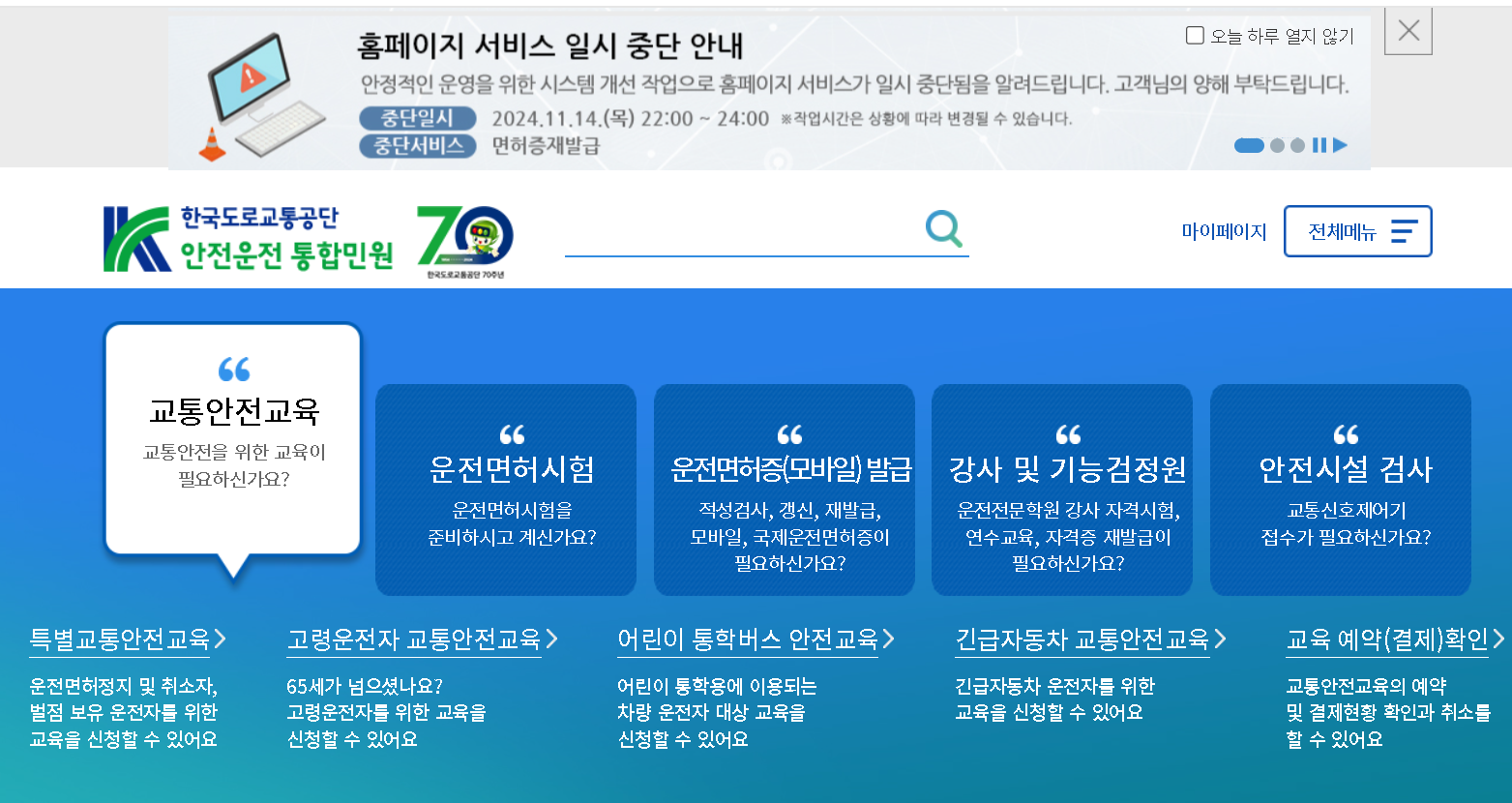 - 갱신 기간: 면허증 만료일 전후 1년 이내. (70세 이상은 만료일 이후 3개월 이내)