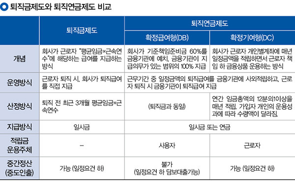 퇴직연금과 퇴직금의 차이