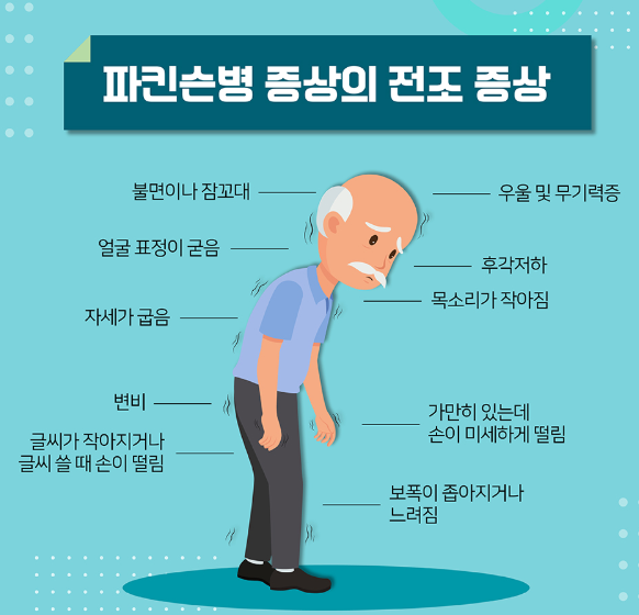 - 파킨슨병은 단순히 운동 기능만 떨어뜨리는 질환이 아닙니다. 다양한 비운동 증상이 동반될 수 있습니다.