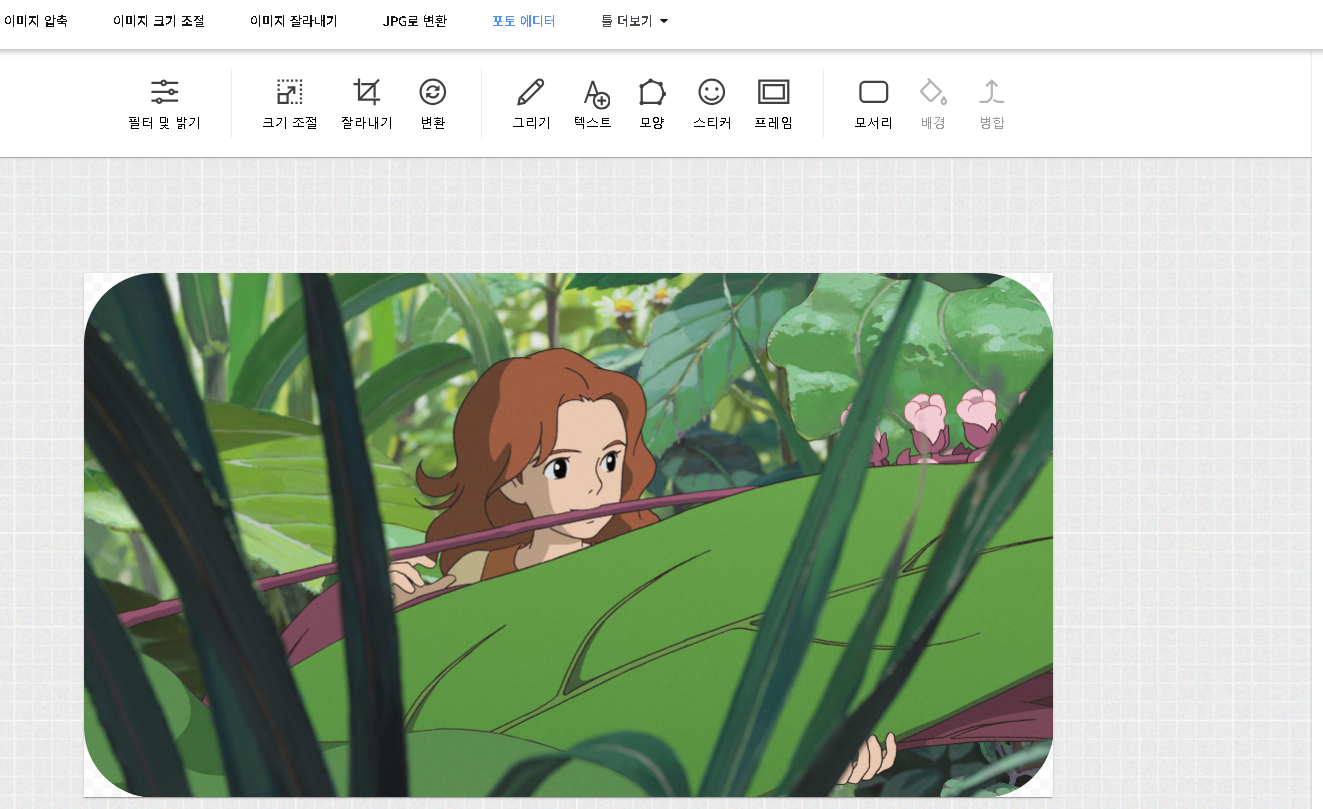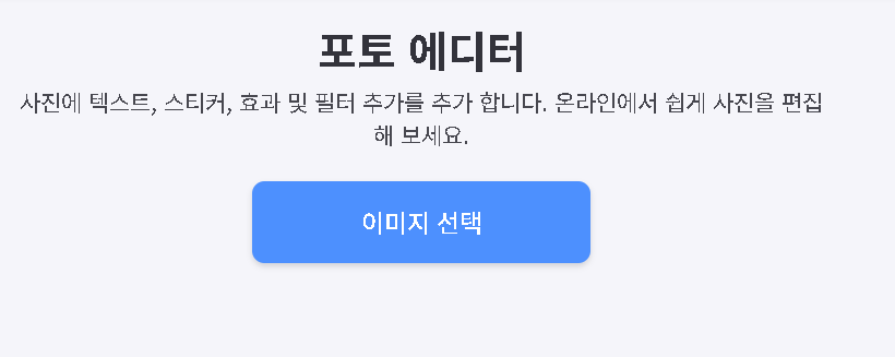 - 포토 에디터 이미선택클릭 작업파일 불러오기나 드래그해서 가져오기
