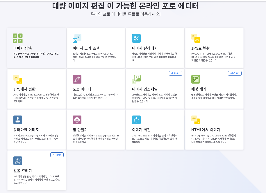 iLoveIMG는 이미지 편집에 필요한 거의 모든 기능을 제공합니다. 주요 기능을 살펴볼까요?