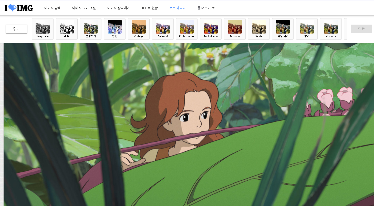 -원하는 흑백, 명도조절, 반전 색상이 한 번씩 다 누르시고 원하는 색상으로 완성되셨다면 상단 오른쪽에 잊지 말고 적용을 눌러주세요.